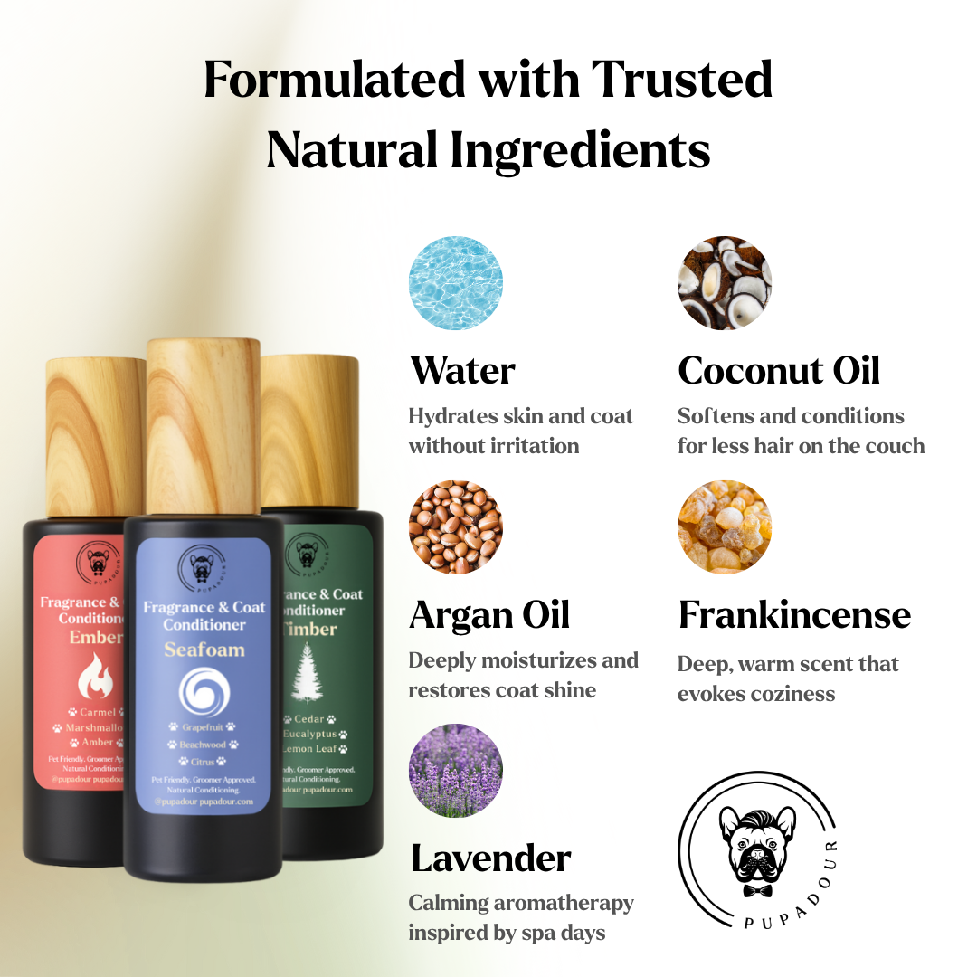 Our Pupadour formula includes coconut and argan oil to help your pups' skin and coats stay healthy & silky soft. Both oils are excellent natural cleansers for the skin and coats of dogs.
