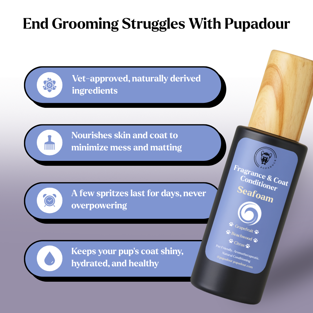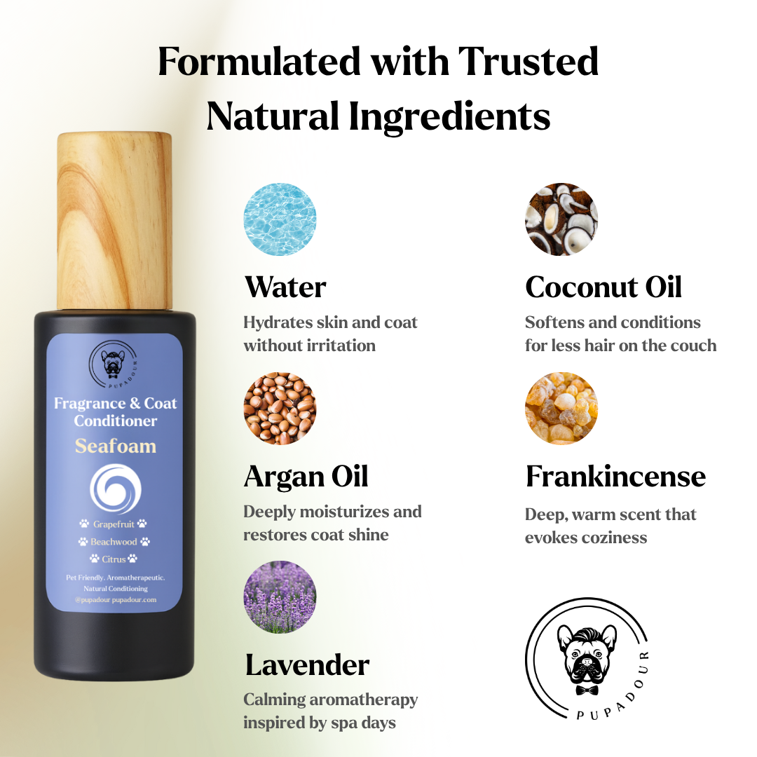 Our Pupadour formula includes coconut and argan oil to help your pups' skin and coats stay healthy & silky soft. Both oils are excellent natural cleansers for the skin and coats of dogs.