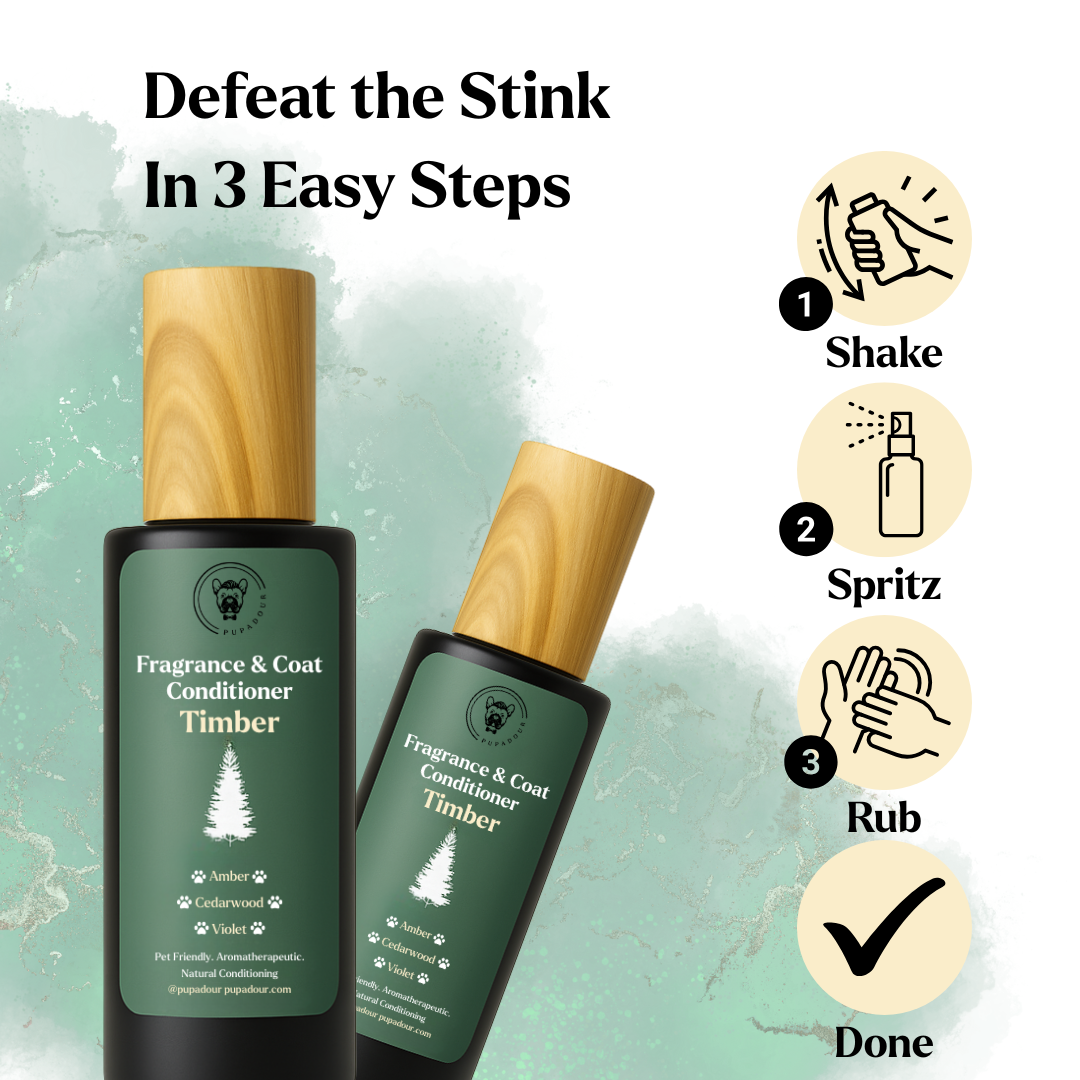 When we were creating Pupadour to use on our pups we only used essential oils that were well studied and proven to be safe. All of our sprays contain Lavender or Frankincense, are already diluted to protect their sensitive sniffers and are 100% safe for use on your pup.