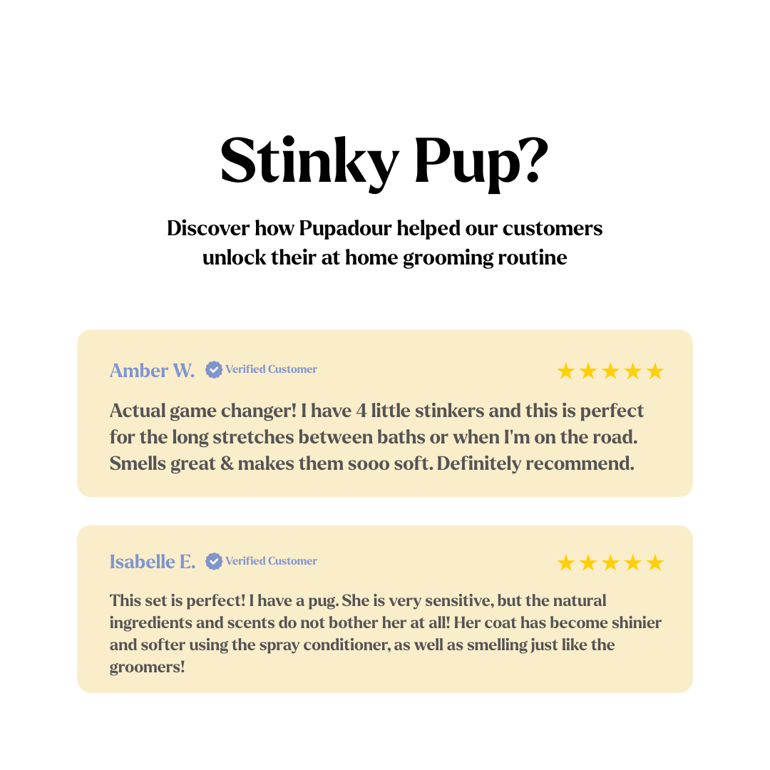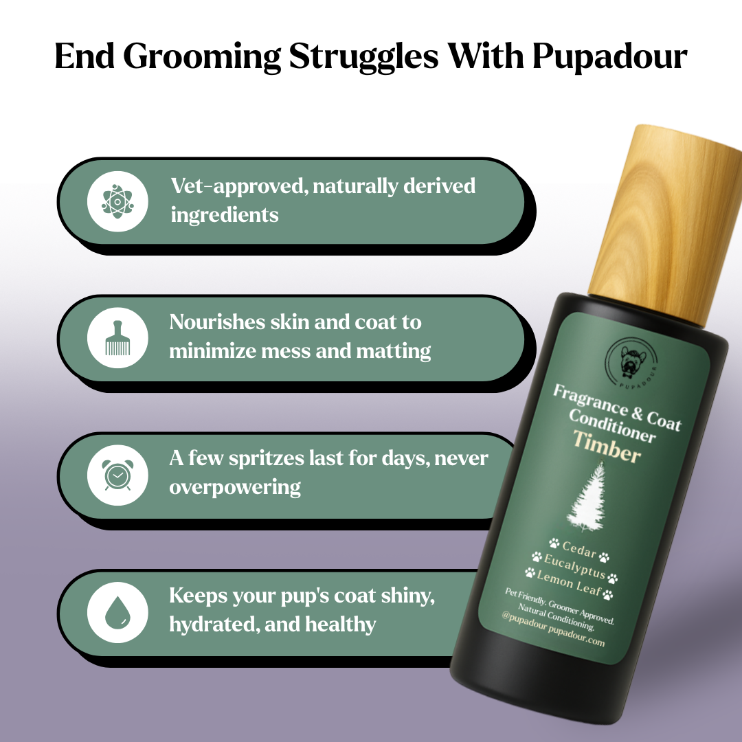 Our Pupadour formula includes coconut and argan oil to help your pups' skin and coats stay healthy & silky soft. Both oils are excellent natural cleansers for the skin and coats of dogs.