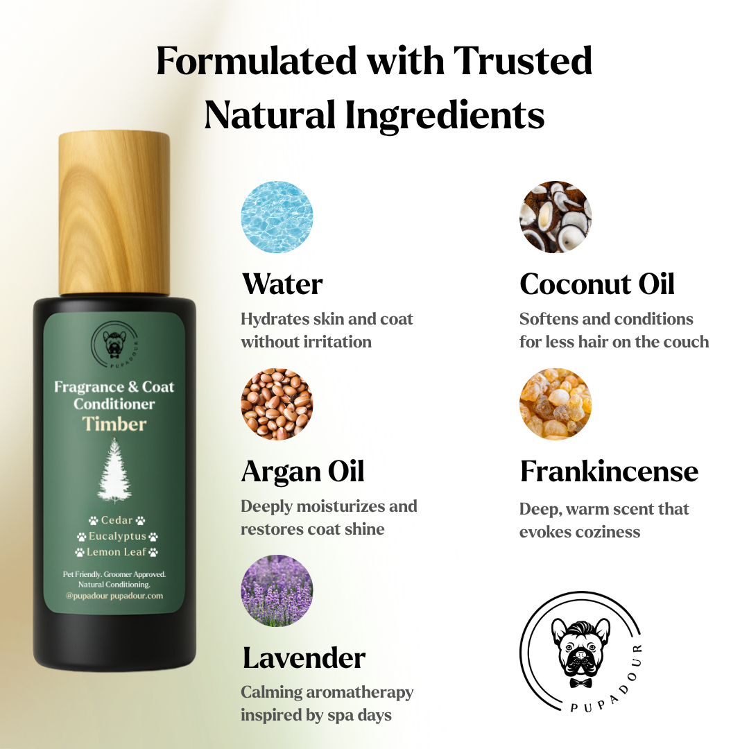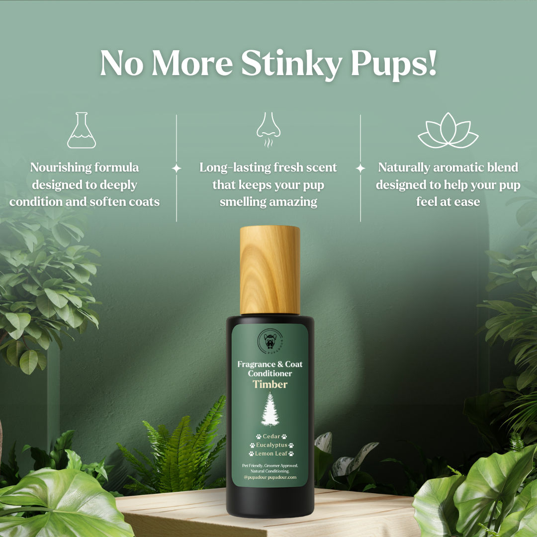 A subtle, nose-friendly fragrance made from pre-diluted essential oils. Designed to refresh without overwhelming sensitive canine senses.